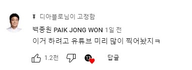 25일 백종원은 디아블로 유튜브 공식 채널에 “이거 하려고 유튜브 미리 많이 찍어놨지”라는 댓글을 달았다.