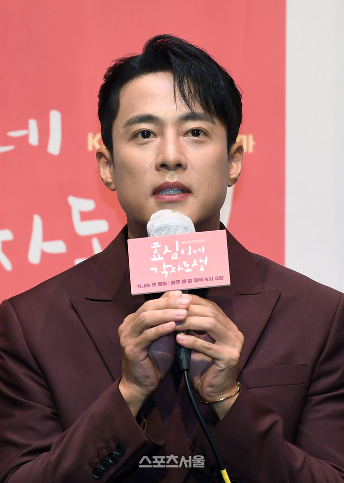 배우 고주원이 12일 서울 구로구 라마디서울신도림호텔에서 진행된 KBS2 주말드라마 '효심이네 각자도생' 제작발표회에서 취재진의 질문에 답을 하고 있다. '효심이네 각자도생'은 가족을 위해 본인의 삶을 희생해온 효심이가 자신을 소중하게 여기기 시작하면서, 독립적 삶을 영위하려는 이야기를 그린 드라마로 배우 유이, 하준, 고주원, 남보라, 설정환, 김도연 등이 출연하며 김형일 PD가 연출을 맡았다. 2023. 9. 12. 박진업기자 upandup@sportsseoul.com