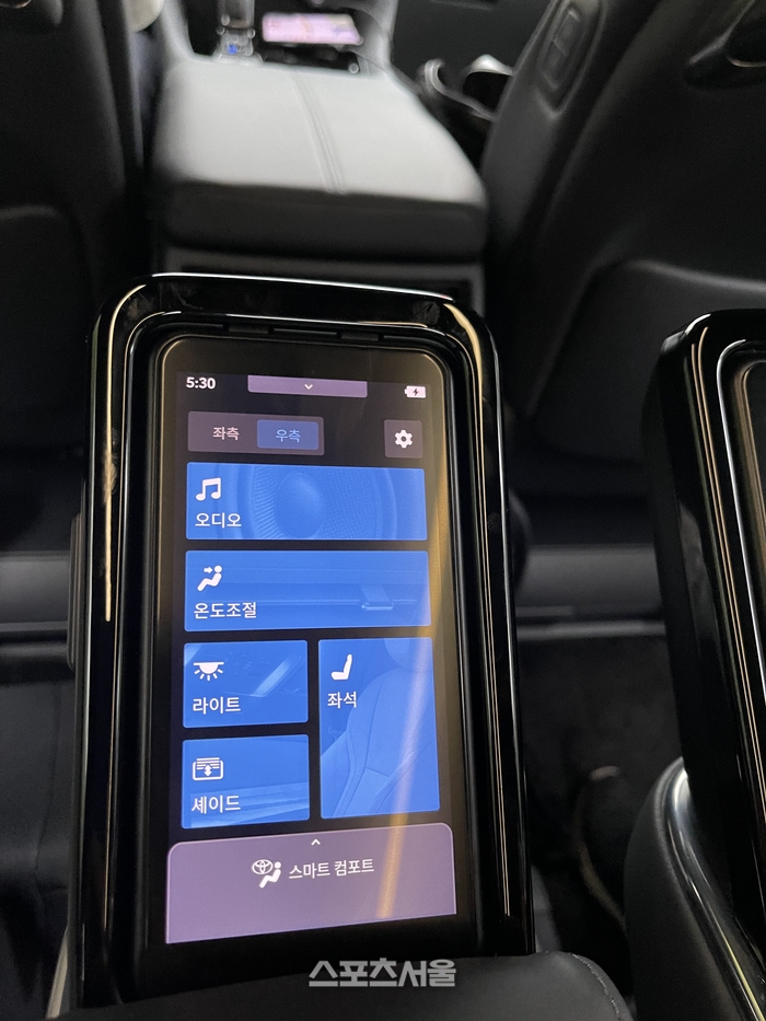 시승 도중 ‘스마트 컴포트’ 모드를 놓고 마사지를 헤보니, 타사 차량에 탑재된 안마 기능보다 강도와 기능면에서도 높은 점수를 주겠다. 이는 격무에 지친 VIP가 운전석 드라이버와 소통하지 않고도 조작을 할 수 있다는 게 큰 장점이라 할 수 있겠다. 콘야마 마나부 토요타 코리아 사장은 “오모테나시(おもてなし·환대) 정신을 담아 고급스러운 승차감과 모두가 사용하기 편안한 기능을 제공하기 위해 노력했다”고 설명했다.
