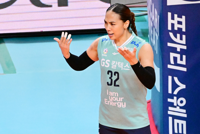 또 정관장 레드스파크스의 메가왓티 퍼티위(인도네시아)는 V리그에 ‘메가 열풍’을 일으켰다. 막강한 화력을 앞세운 공격력과 인니 팬들을 경기장으로 불러들이는 등 코트 안팎에서 큰 화제를 몰고왔다. 페퍼저축은행 미들블로커 엠제이 필립스(필리핀) 역시도 중앙에 서 만능 활약을 펼치고 있지만 GS칼텍스에는 이야기가 다르다.