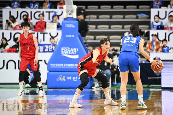 [스포츠서울 | 아산=김동영 기자] 기분 좋은 하루다. 구단 ‘역사’를 썼다. 감격의 챔프전 ‘첫 승’이다. 부산 BNK 썸 얘기다. 환호했고, 웃었다. 그런데 또 웃지 못할 일도 있다. ‘수비’ 때문이다. “우리 수비가 통해서가 아니”라고 했다.