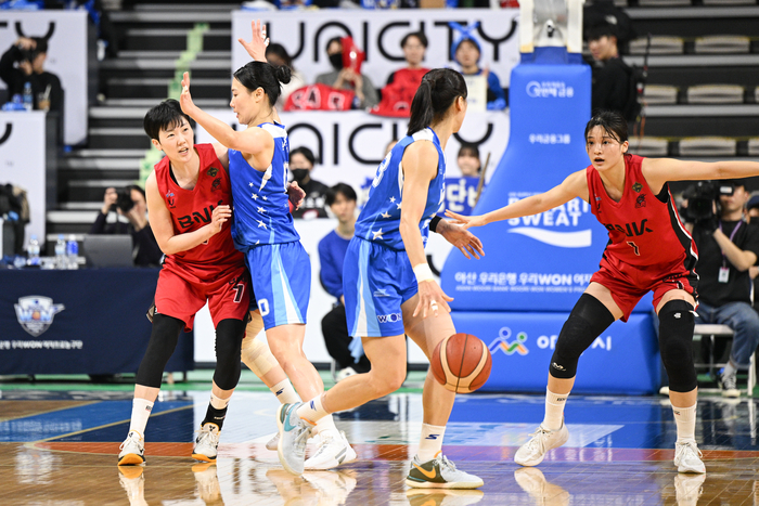 즐겨도 될 법했다. 아니다. 안 된 부분을 짚었다. 수비다. 잘 통했다고 봐야 한다. 후반 스코어가 30-15로 더블 스코어다. 지역방어와 맨투맨 수비를 섞으며 우리은행을 곤란하게 만들었다.