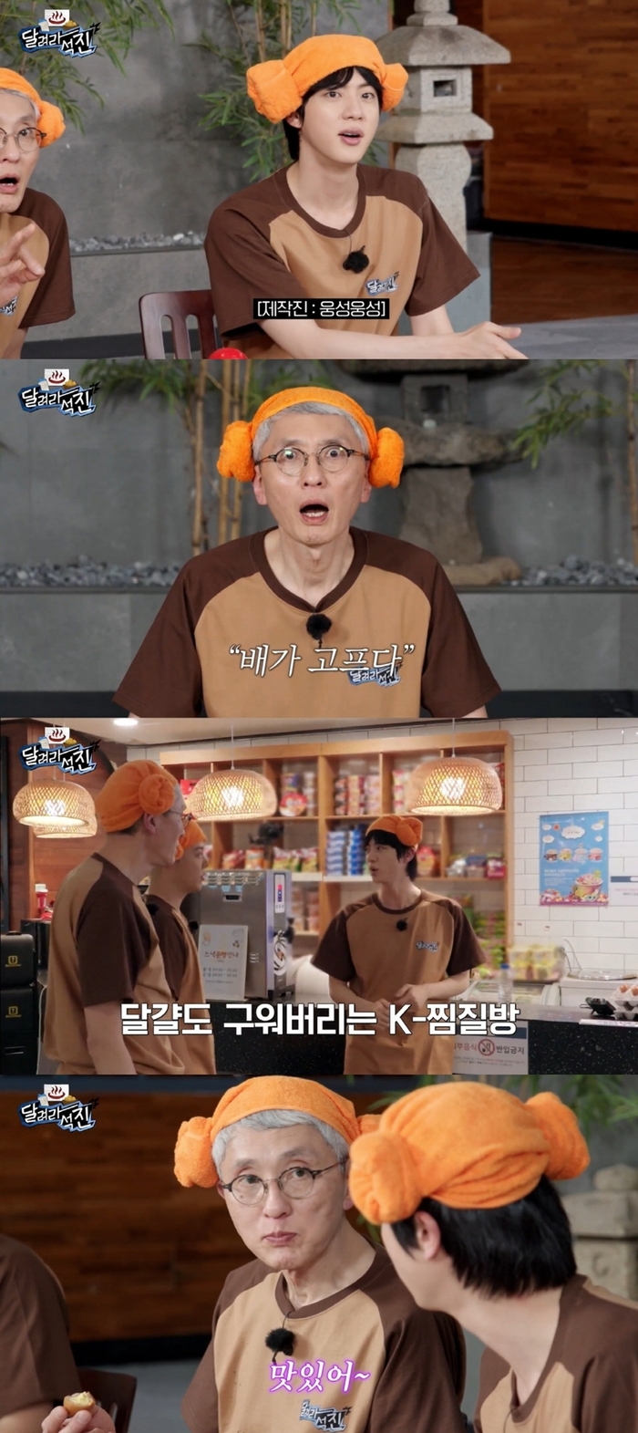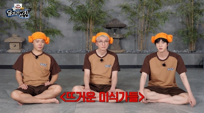 진은 18일 방탄소년단 유튜브 채널에 자체 예능 ‘달려라 석진’ 26화를 게재했다. 일본드라마 ‘고독한 미식가’의 배우 겸 감독 마츠시게 유타카와 방송인 강남과 함께 찜질방 완전 정복에 나서는 내용이다. 진은 한국 찜질방이 처음인 마츠시게 유타카에게 양머리 수건을 만드는 방법을 알려주고 매점 인기 메뉴를 소개하는 등 찜질방 고수의 면모를 드러냈다.