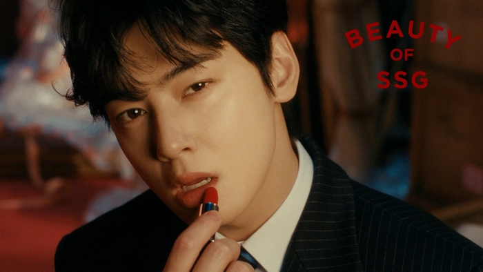 본편 영상은 17일 SNS를 통해 전격 공개한다. 차은우가 빨간 립스틱을 바르는 파격적인 오프닝으로 시작되는 이번 광고는 ‘세상의 모든 화장품이 쓱에 있다’는 메시지를 담았다.