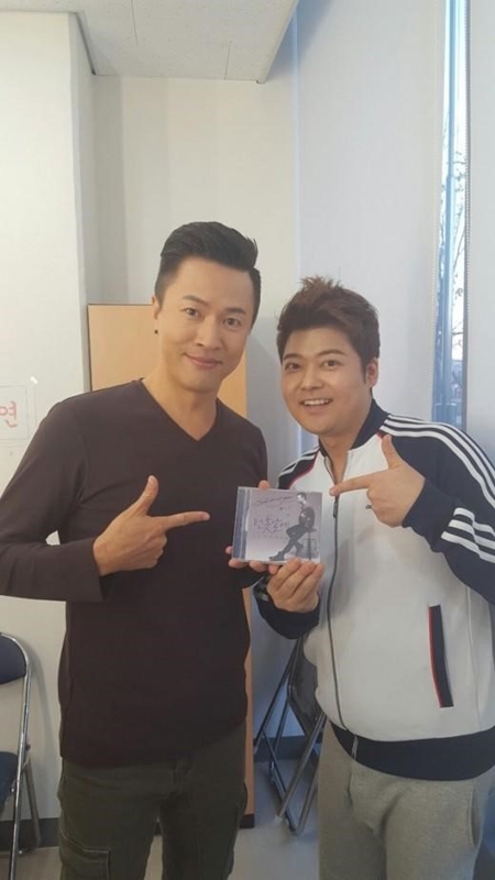 공개된 사진 속에는 '히든싱어4' 진행을 맡고 있는 전현무와 나란히 서서 포즈를 취하고 있는 김정민의 모습이 담겼다.