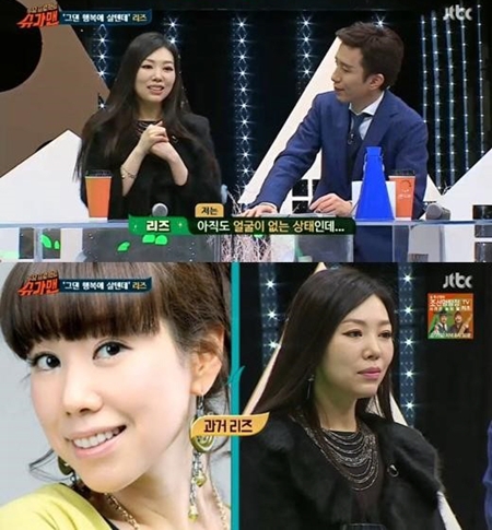 과거 '얼굴 없는 가수'로 활동했던 리즈는 의외의 입담으로 MC들을 놀라게 했다. 리즈는 "김범수 씨와 같이 얼굴 없는 가수를 하다가 김범수 씨는 얼굴이 알려졌고, 저는 아직도 얼굴이 없는 상태다"고 말했다.