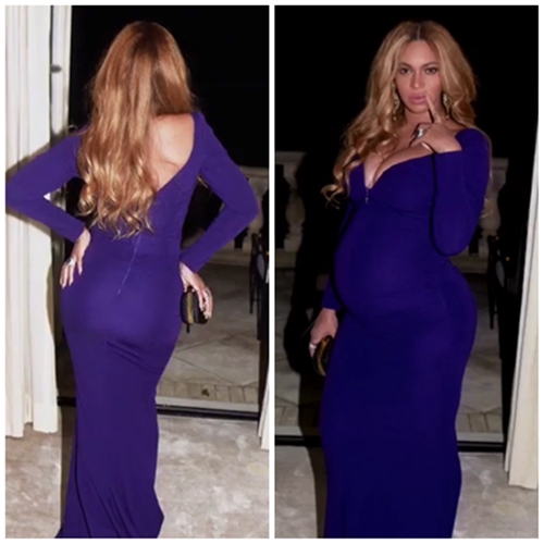 쌍둥이를 임신 중인 비욘세의 출산이 임박한 D라인이 눈길을 사로잡는다.