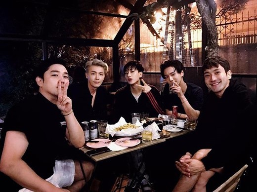 다섯명은 모두 블랙 컬러로 의상을 맞춰 입고 편안한 모습을 드러냈다. 한 층 더 성숙해지고 남자다워진 모습이 인상적이다.