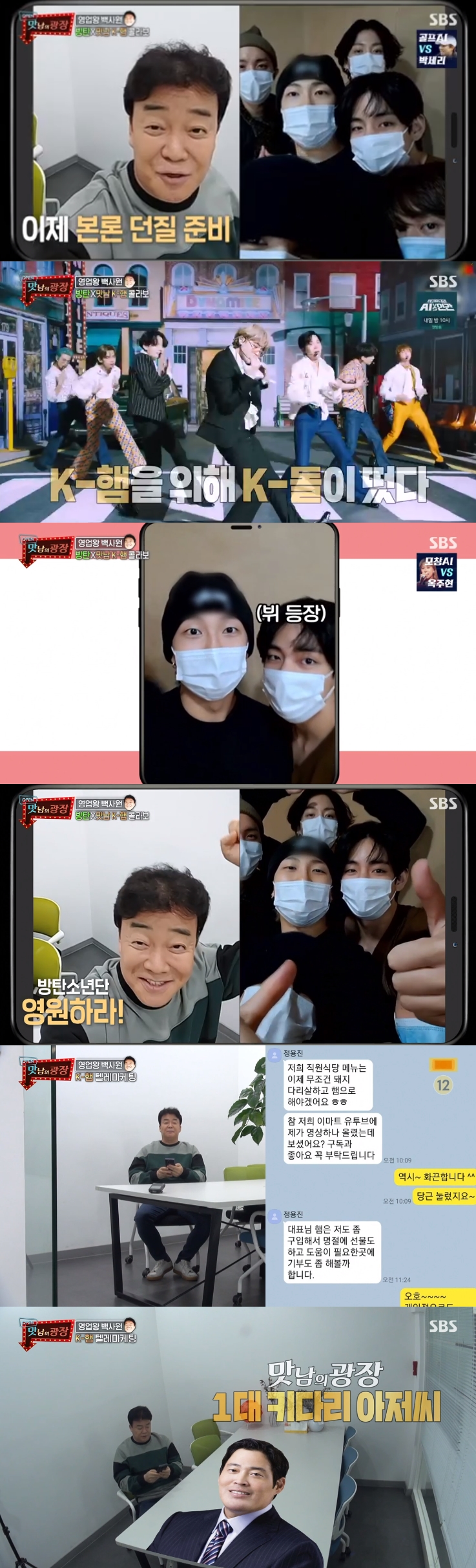 백종원은 월드 스타 방탄소년단에게도 전화해 "부탁해서 어쩌지. 방탄소년단이 햄을 맛있게 먹는 걸 보여주면 홍보에 도움이 될 것 같다"라고 말하며 사정을 설명했다. 방탄소년단도 흔쾌히 수락했고, 백종원은 "방탄소년단 영원해라 화이팅"이라고 말하며 기뻐했다.