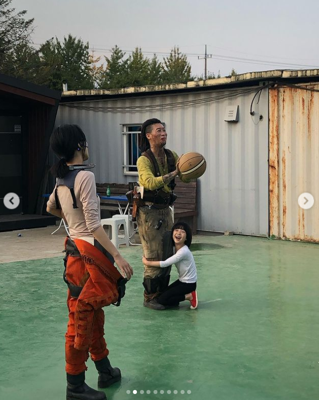 송중기의 무등을 탄 박예린이 슛을 시도하는 가운데 진선규가 볼보이를 자처하고 있는가 하면 극중 검은여우단으로 출연한 외국인배우들 틈에서 팬미팅이라도 하듯 둘러앉아 간식을 먹는 모습 등도 담겨있다.