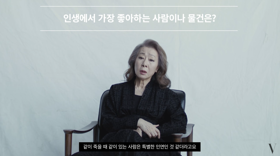 이어 윤여정은 '다시 태어난다면 어디서 태어나고 싶나요?'라는 질문에 "다시 태어나고 싶진 않지만 한국에 다시 태어나는 거 좋다. 왜냐하면 우리는 너무 어려울 때 살았었지 않냐. 제가 일흔 다섯이니까 많은 걸 봤다. 과거 우리나라와 지금을 비교하면 세상이 이렇게 발전할 수가 없다"라며 뿌듯한 웃음을 지었다.