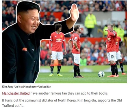 29일(한국시간) 영국 '맨체스터 이브닝 뉴스'는 김정은 북한 국방위원회 제 1위원장이 맨유의 열렬한 팬이라고 보도했다. 보도에 따르면 김정은은 단순한 팬을 넘어 맨유와 협력 관계를 구축할 방도를 찾고 있다고 알려졌다.