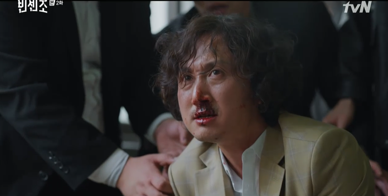 대답을 들은 빈센조가 묘한 표정을 지어 두 사람의 관계에 궁금증을 모았다. 아울러 최악의 그룹으로 묘사되는 바벨그룹의 장한서(곽동연 분) 회장이 누군가에게 아이스하키 퍽으로 구타당하는 모습이 그려지기도 했다.