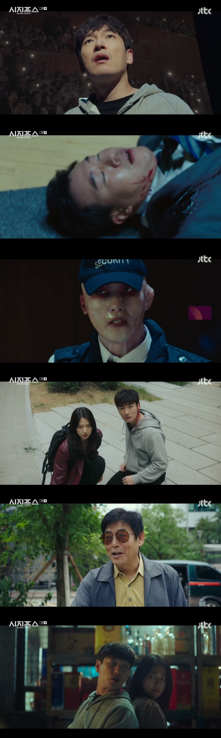 24일 방송된 JTBC 드라마 '시지프스: the myth'에서는 박사장(성동일 분)이 한태술(조승우 분)과 강서해(박신혜 분)를 납치한 모습이 그려졌다.