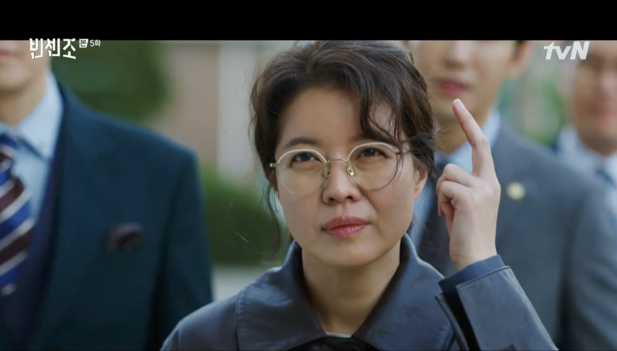앞서 트럭으로 자신을 위협하던 협박범이 빈센조라고 생각했던 최명희(김여진 분)는 우상을 직접 찾아와 바벨화학 소송을 맡게됐다는 빈센조의 목소리를 듣고 이를 확신하게 된다. "자유에는 책임이 따른다"는 말로 기억에 방아쇠를 당긴 빈센조의 얼굴을 노려보던 최명희는 우상의 한승혁 대표(조한철 분)에게 "앞으로 바벨그룹 소송 모두 제가 합니다. 서초동 바닥에 소문 내세요"라며 전의를 불태운다.