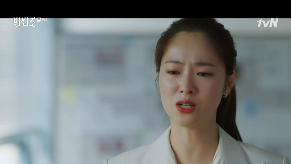 빈센조와 함께 소송을 준비하던 차영은 "바벨화학 소송이 끝나면 어떻게 할거냐. 혹시나 한국에 남는건가 궁금했다"며 묻는다. 빈센조는 "이 나라에 미련없다. 소송 끝나면 떠날거다"라고 말한다.