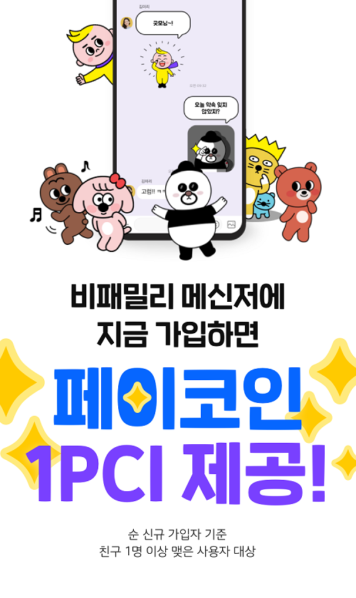 이에 비패밀리 측은 “비패밀리를 통해 페이코인(PCI)을 받고, 가까운 사람끼리 즐거운 대화도 나누길 바란다”고 전하기도 했다.