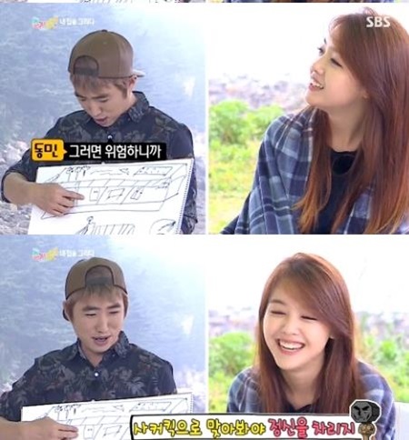 이날 장동민은 일자형 구조에 처마가 있고, 주방에 방 2개가 있는 집을 제안했다. 장동민은 바다를 바라볼 수 있고, 외가댁 같은 분위기를 살렸다며 "민아는 위험하니 나와 방을 쓰자"고 말해 웃음을 자아냈다. 장동민의 발언에 '사커킥을 맞아야 정신 차리지'라는 자막이 나와 눈길을 끌었다.
