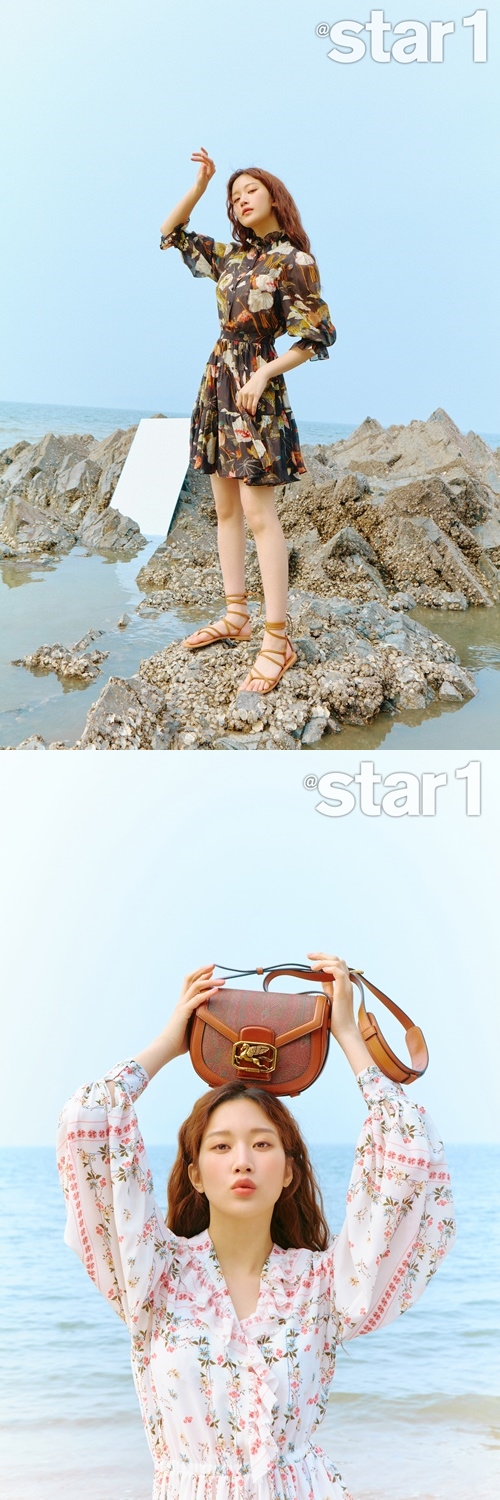 18일 스타&스타일 매거진 '앳스타일'이 공개한 화보에서 문가영은 지중해 모티브의 화려한 패턴과 페미닌한 실루엣이 돋보이는 컬렉션 착을 완벽 소화했다.
