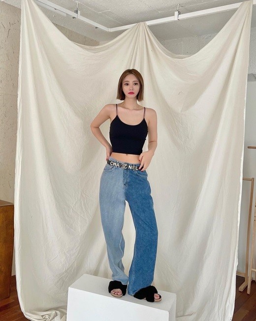 또다른 사진에선 슬리퍼 차림에도 긴 다리 등 빛나는 8등신 비율의 몸매가 돋보인다.