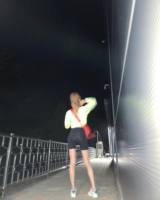 공개된 사진에는 캄캄한 밤에 형광색 점퍼와 짧은 레깅스 차림의 나나가, 영상에는 달리는 모습이 담겨있다. 171cm의 키에 작은 얼굴, 유난히 긴 다리 등 완벽한 8등신 몸매가 전문 모델을 방불케한다. 탄력넘치는 뒤태도 눈길을 끈다.