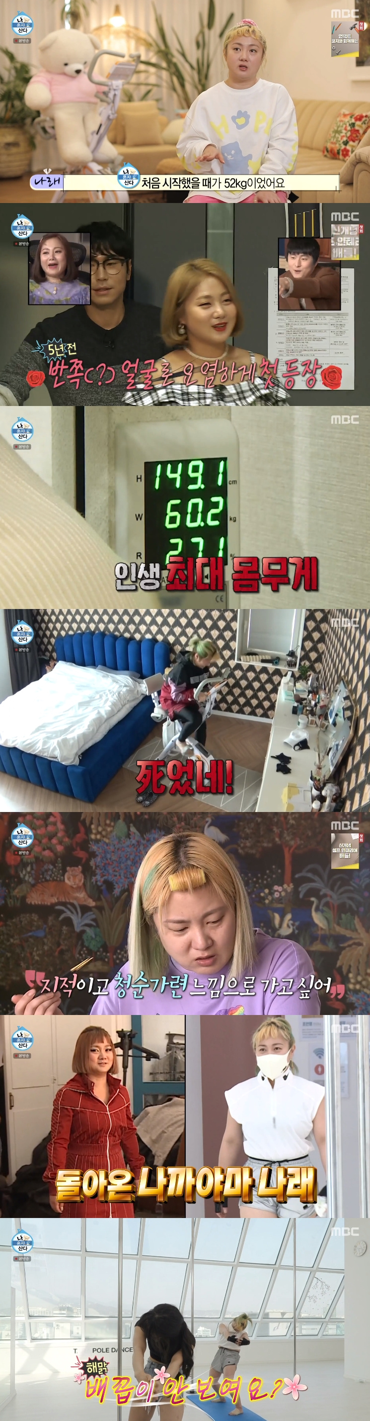 박나래의 다이어트기도 공개됐다. 박나래는 "'나 혼자 산다' 처음 시작했을 때 52kg였다. 유지를 했지만 60kg까지 쪘다"며 "프로필 사진을 찍은 지 오래돼 7년 만에 다시 찍게 됐다. 제 프로필 사진을 보고 '이 몸매가 아니다'라는 반응을 봤다"고 말했다.