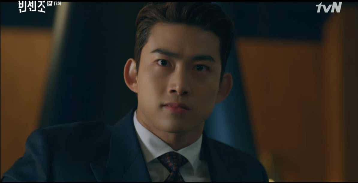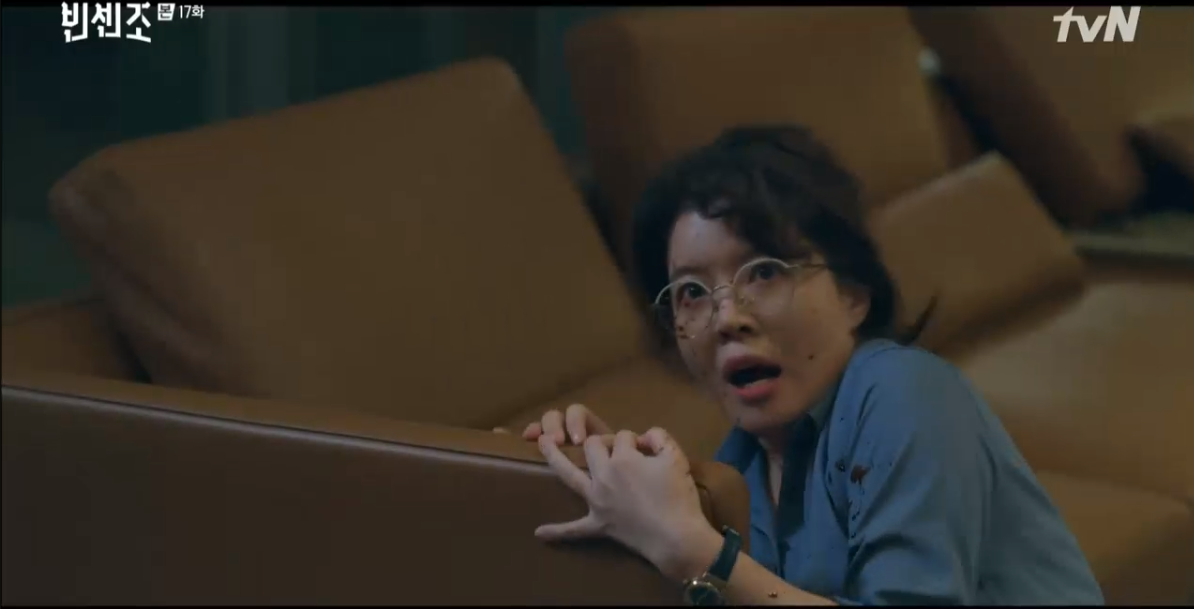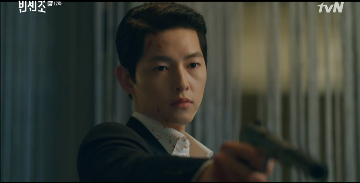 눈앞에서 이를 목격한 최명희(김여진 분) 장한서(곽동연 분) 한승혁(조한철 분) 등이 비명을 지르는 가운데, 빈센조는 장한석에게 총구를 겨눴다. 모두가 겁에 질려 소파 밑으로 고개를 떨군 가운데 빈센조는 "내가 왜 너희를 안 죽인 줄 알아? 귀찮아서. 난 할일이 많은데 너희들을 죽이면 성가시거든. 아무튼 너희 이제 죽어야 해"라고 말했다.