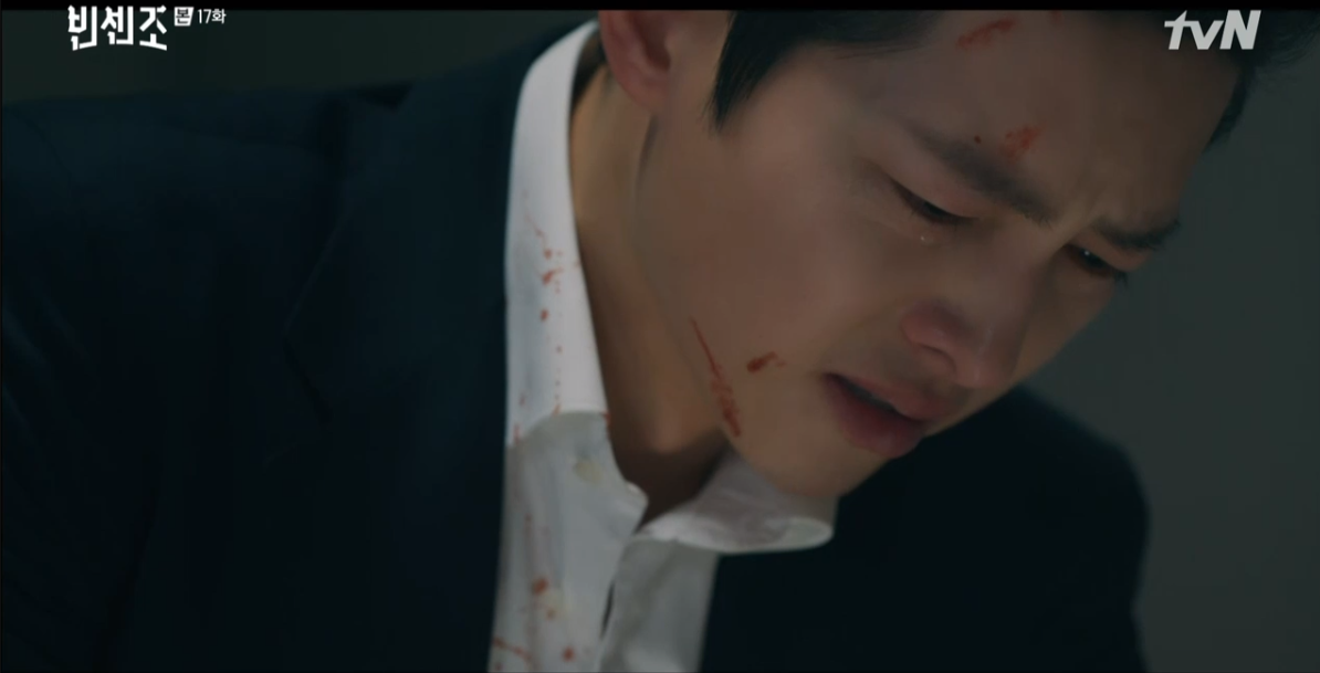 24일 방송된 tvN'빈센조'에서 한번도 어머니라 불러보지도 못한 어머니를 속수무책으로 잃은 빈센조(송종기 분)가 장한석(옥택연 분)의 별장에 쳐들어가 피바람을 예고했다. 이날 방송에서 빈센조는 어머니의 목을 졸라 죽인 범인을 찾아내 피투성이 채로 별장에 밀어넣은 뒤 살해했다.
