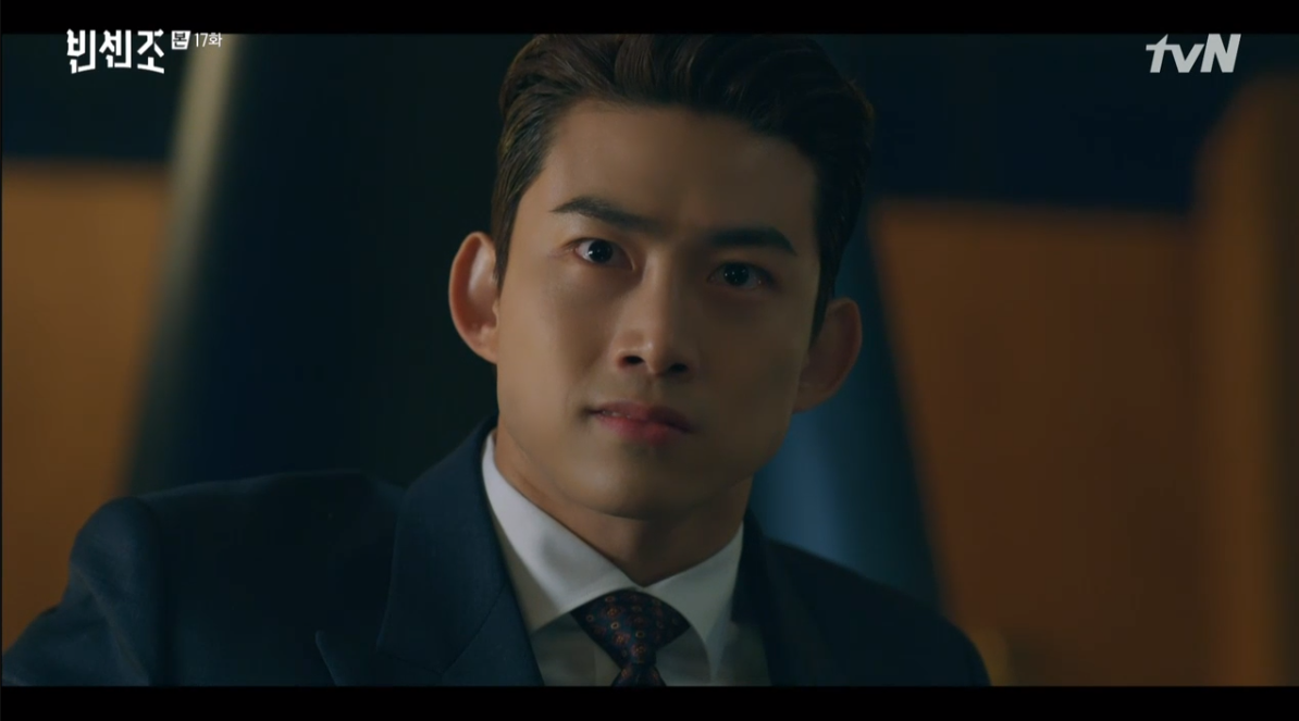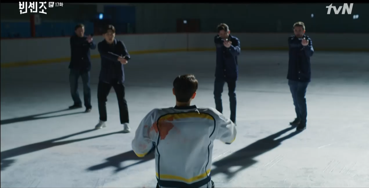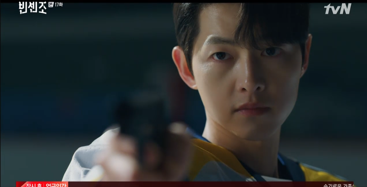 눈앞에서 이를 목격한 최명희(김여진 분) 장한서(곽동연 분) 한승혁(조한철 분) 등이 비명을 지르는 가운데, 빈센조는 장한석에게 총구를 겨눴다. 모두가 겁에 질려 소파 밑으로 고개를 떨군 가운데 빈센조는 "내가 왜 너희를 안 죽인 줄 알아? 귀찮아서. 난 할일이 많은데 너희들을 죽이면 성가시거든. 아무튼 너희 이제 죽어야 해"라고 말했다.