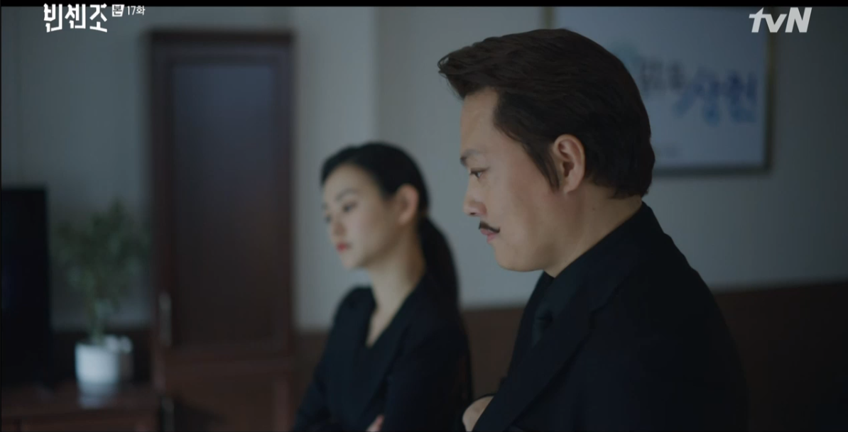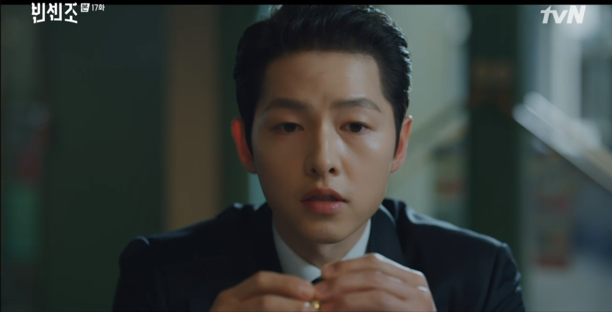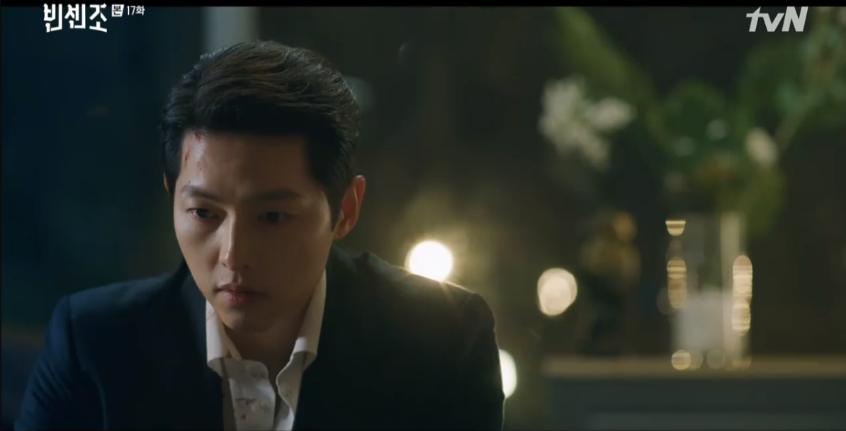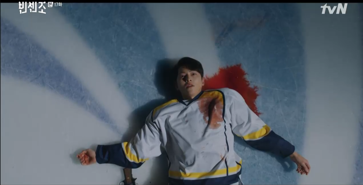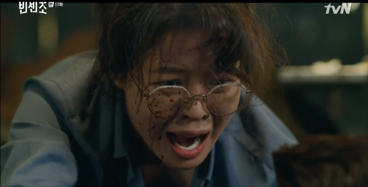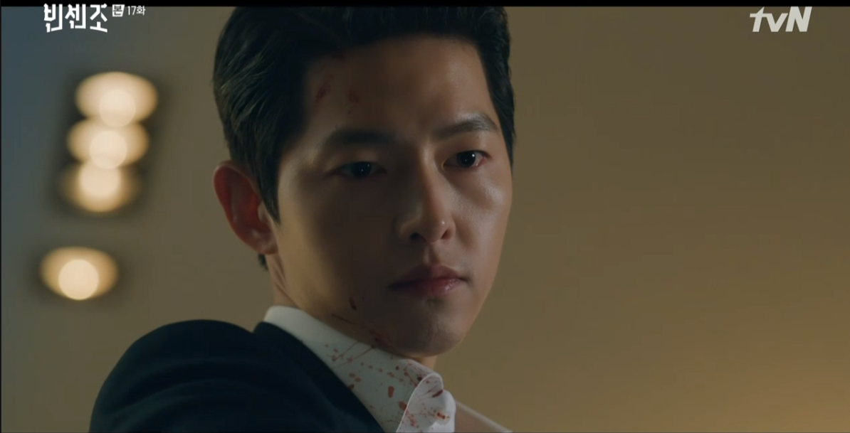 피투성이가 된 얼굴로 뒤돌아 나가던 빈센조는 "아, 그래도 애피타이저는 있어야지"라며 장한석에게 다가서 귀를 쐈다. 장한석이 비명을 지른 가운데, 빈센조는 멀어져갔다. 빈센조는 병원으로 와 고요한 시신이 되어 누워있는 어머니 오경자(윤복인 분)을 바라보며 처음으로 "엄마"라고 부르며 눈물을 흘렸다.