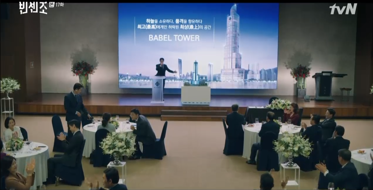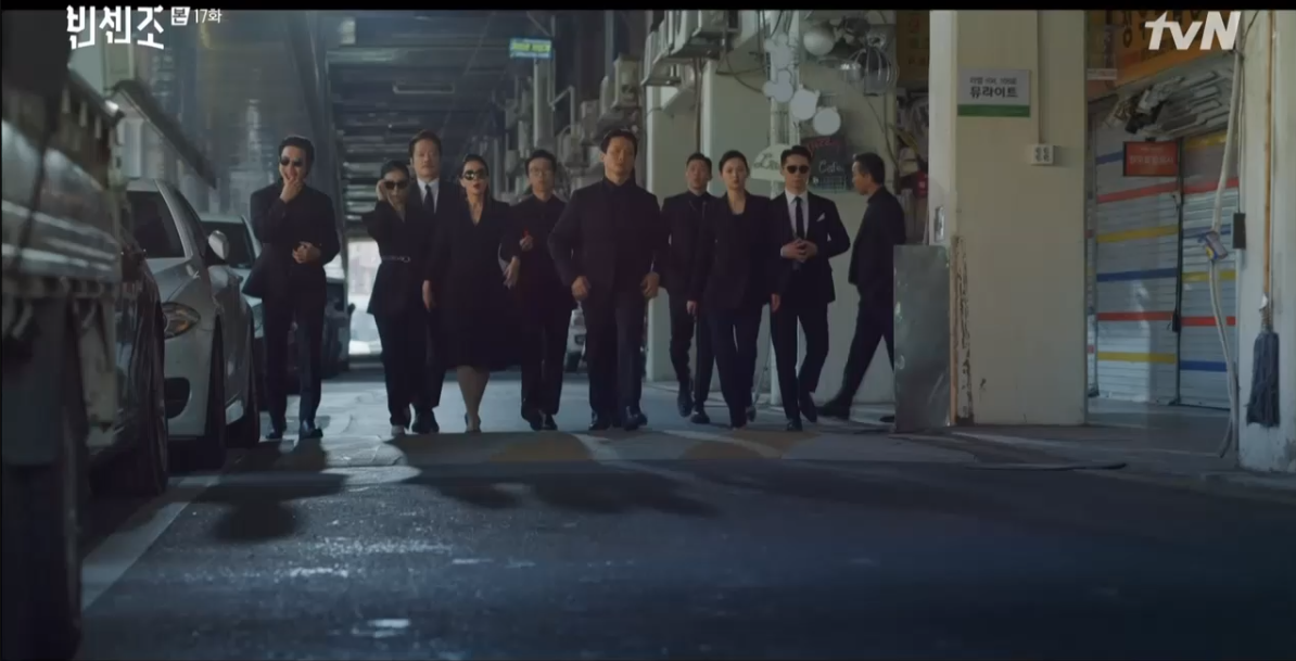 빈센조가 어머니를 잃은 뒤 생계까지 접고 빈센조를 돕기로 한 금가프라자 사람들은 검정색 까사노 패밀리복을 차려 입고 복수에 나섰다. 이들이 향한 곳은 바벨그룹의 상징인 바벨타워 분양행사였다. 이날 참석한 VIP 정재계 인사들은 바벨그룹에 대한 파격적인 지원을 공약으로 걸며 로얄동을 차지하기 위해 발버둥쳤다.
