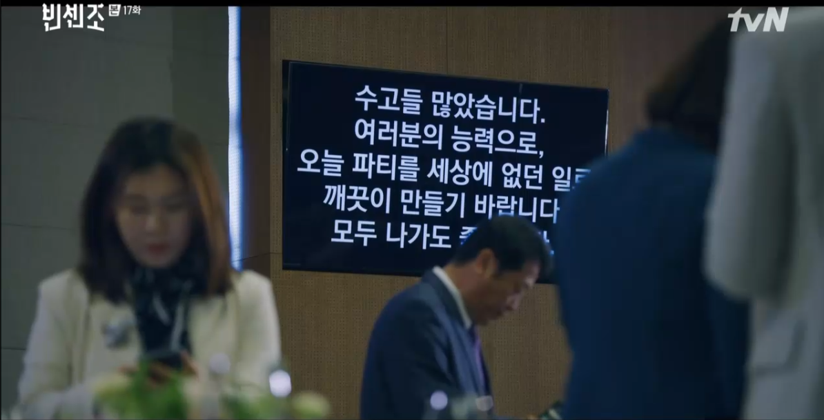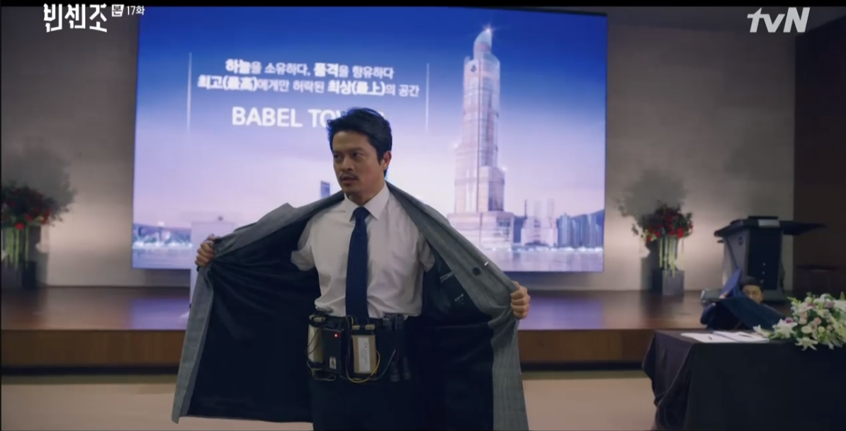 전광판에는 '당신들의 능력으로 이 일을 없던일로 만들기 바란다'는 메시지가 나왔고, 사람들이 모두 몰려나간 상황에서 다시 폭탄의 시계가 진행되며 가짜 폭탄이었음이 밝혀졌다. 빈센조가 두번째 복수를 준비 중인 가운데 장한서가 바벨타워 파티 정보를 빈센조에게 흘린 사실이 밝혀졌다.
