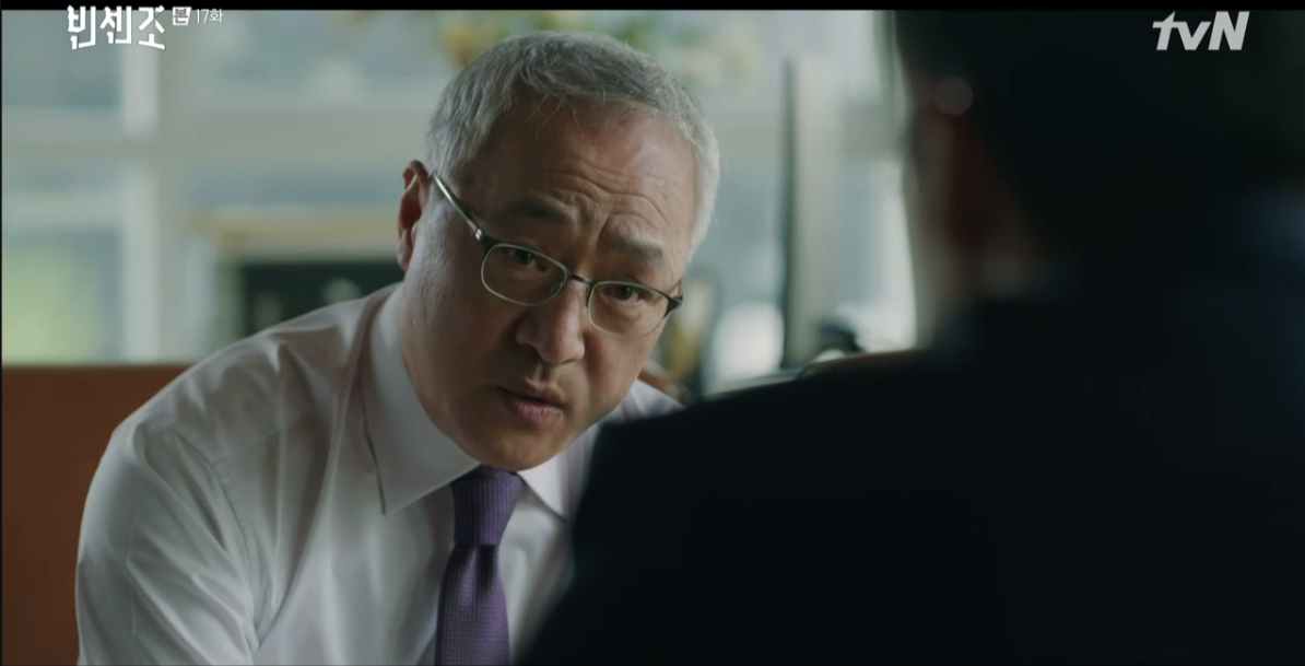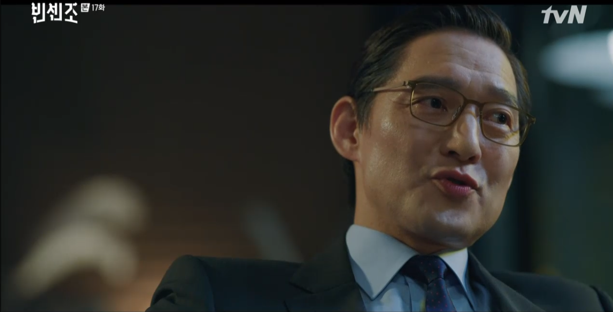 대권에 치명타가 될 수 있는 기요틴파일을 확보하기위해 대권주자 선에서 움직이기 시작했다. "빈센조를 함부로 건드리지 마라"는 경고와 함께 한승혁이 남동부 지검장으로 영전하고, 장한서가 회장이 되는 그림이었다. 그런 가운데 한승혁은 빈센조가 24시간 안에 인터폴 수배를 당할 예정이라는 비밀을 장한서에게 알려준다.
