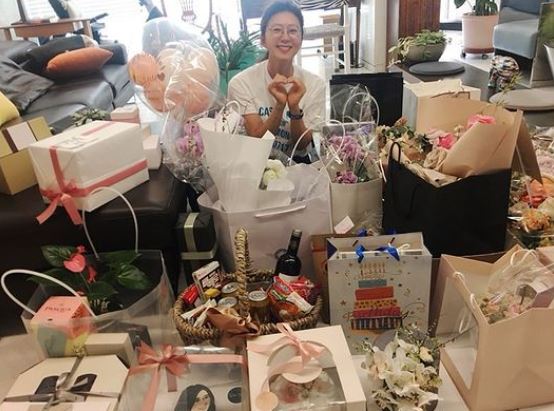이와 함께 수많은 선물을 보고 미소 짓고 있는 사진을 덧붙였다. 안경을 쓰고 민낯인 모습에서도 김희애는 청순한 매력을 드러냈다. 투명한 피부가 동안 외모를 더 돋보이게 했다.