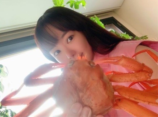 공개된 사진에는 자신의 얼굴만 한 크기의 게를 들고 있는 서우의 모습이 담겨있다.