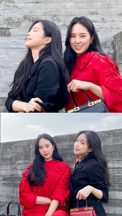 공개된 사진은 손나은과 손새은의 투샷으로 두 사람은 각각 블랙, 레드 원피스를 입고 우월한 비주얼을 드러냈다. 긴 웨이브 머리 스타일부터 얼굴형과 이목구비까지 똑 닮은 모습이다. 웃는 분위기까지 비슷해 붕어빵 자매임을 입증했다.