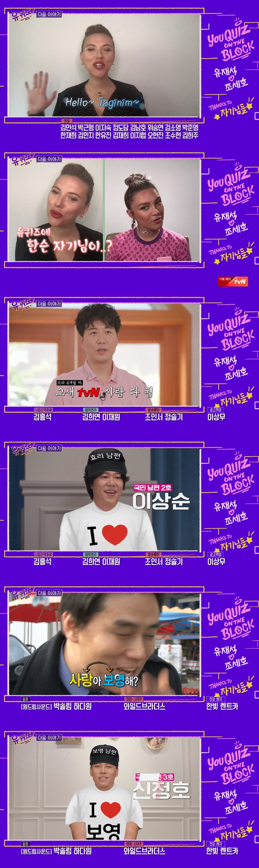 [스포츠서울 이게은기자] 할리우드 배우 스칼렛 요한슨과 플로렌스 퓨가 '유 퀴즈 온 더 블럭'에 깜짝 등장했다.