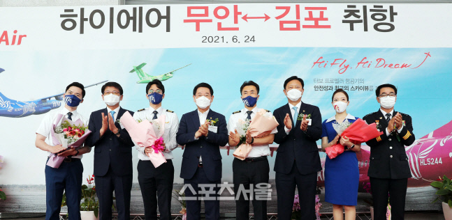 [무안=스포츠서울 조광태 기자] 무안~김포 간 하늘길을 연결하는 ‘하이에어(Hi-Air)’의 신규 노선 취항식이 24일 무안국제공항에서 열렸다.