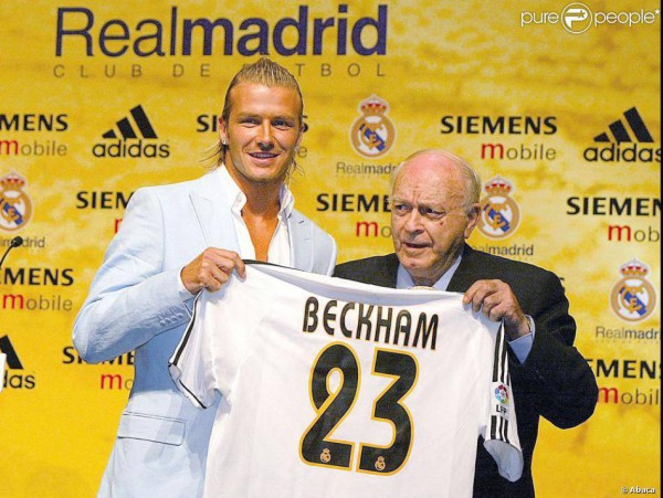 영원히 맨유에서만 뛸 것 같았던 베컴은 알렉스 퍼거슨 前 감독과 불화를 일으켜 레알 마드리드로 이적한다. 하지만 레알 마드리드의 7번은 클럽의 상징인 라울 곤잘레스였다. 이에 베컴은 23번을 선택했다. 베컴이 23번을 선택하게 된 이유에는 농구계의 전설인 마이클 조던의 번호였다는 것과 영국의 대문호 셰익스피어가 사망한 1616년 4월23일과 연관있다는 것, 부인 빅토리아 베컴이 추천했다는 설이 있다.