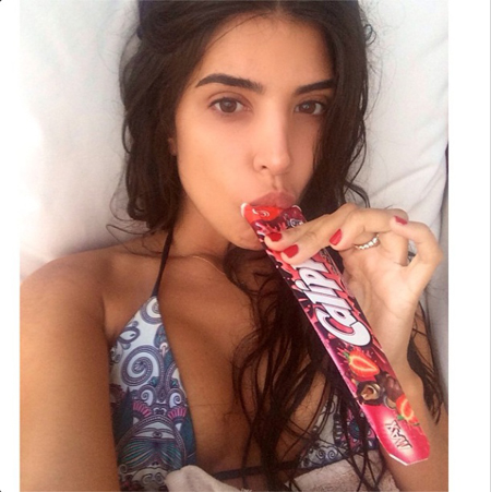 또 다른 사진은 아타네스의 볼륨감을 엿볼 수 있다. 빨간 보트 위에서 요염한 자세를 취하고 있다. 검정 비키니와 선글라스가 시선을 사로잡는다. 아이스크림을 먹고 있는 사진은 그의 풍만한 볼륨감을 느낄 수 있다.