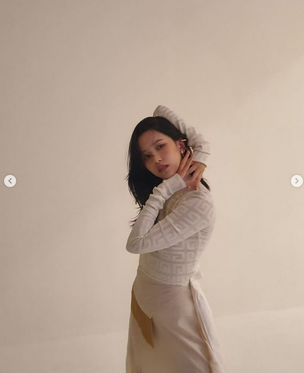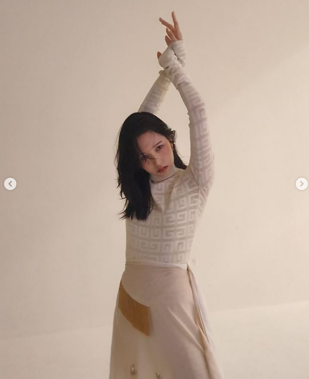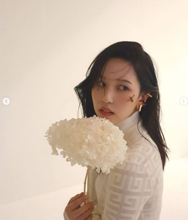 또다른 사진 속에서 미나는 고혹적인 분위기가 물씬 풍기는 포즈를 취하고 있다.