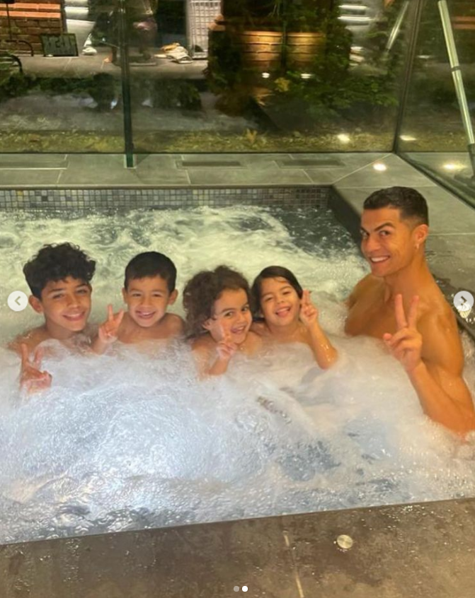 호날두는 아내 조지나 로드리게스와 침대에 누워 환한 미소를 짓는 사진과 함께 귀여운 네 아이들과 함께 목욕을 하는 사진을 올렸다. 그는 조지나와 사이에 이미 4명의 아이를 둔 다둥이 아빠다.