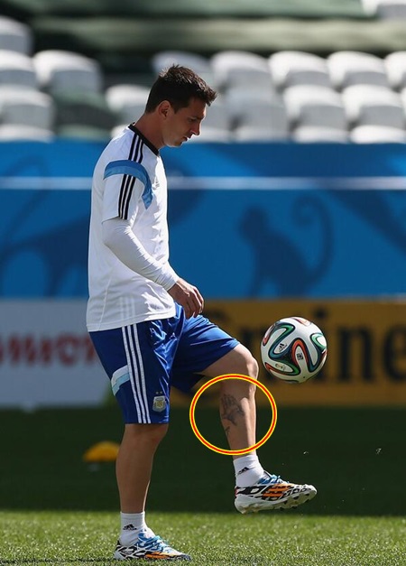 ‘축구의 神’으로 꼽히는 리오넬 메시(FC바르셀로나)는 자신의 아들 티아고의 손 모양과 이름을 왼쪽 종아리에 새겨 아들에 대한 남다른 애정을 과시하고 있다. ‘악동’ 루이스 수아레스는 오른쪽 손목에 그의 딸 델피나의 이름을 새겼다. 수아레스는 항상 골을 넣으면 이 문신에 키스를 하며 ‘딸바보’ 면모를 보여준다.