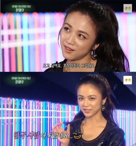 중국 톱 여배우 탕웨이가 지난해 패션매거진 '인스타일'과 인터뷰에서 "한국음식 중 가장 좋아하는 음식은 전복죽과 삼계탕"이라고 밝혔다. 지난 7월 탕웨이는 KBS '연예가중계'에 출연해 "포장마차에서 먹는 음식과 막걸리를 때문에 한국에 다시 오고 싶다"고 말해 소탈한 매력을 보여줬다.