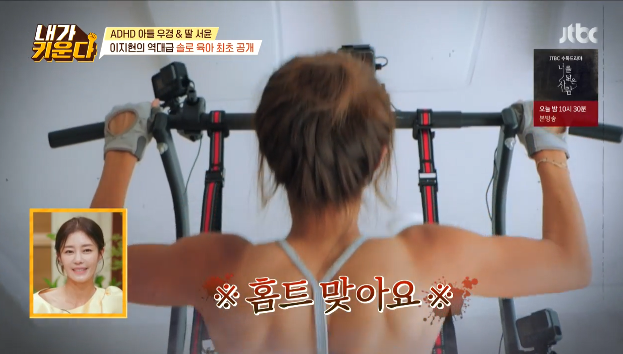 이에 김현숙은 "여자 강철부대 나가셔야 겠다"라며 감탄했다. 놀라는 엄마들에게 이지현은 "우리 집안이 다 술을 못한다. 그러다 보니 운동으로 스트레스를 푼다"라며 웃었다. 김현숙은 "저랑 정말 다르시네"라며 고개를 저었다.