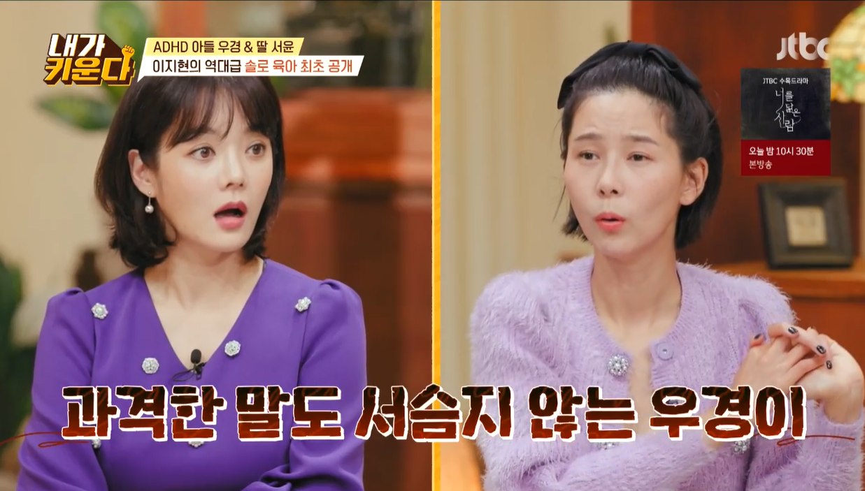 이지현은 "늘 우경이의 문제행동만 바로잡으려고 했더니 우경이가 5세 때부터 '나는 죽고싶어' 이런 말을 하더라. 하늘이 무너지는 것같았다. 그때부터 나라도 아이를 너무 몰아치지 말자 생각했다. 아이 옆에 항상 엄마가 있다고 느끼도록 노력했다"라고 말했다.