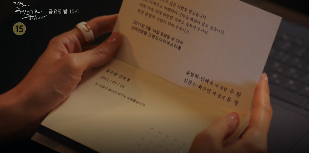 한편 이어진 예고편에서 신유정이 윤수완과 자신의 이름이 적힌 청첩장을 펼쳐보는 모습이 그려져 충격을 안겼다. 결혼식 날짜는 2011년5월14일이었고, 수완은 결혼식 두달 전인 3월15일 사망했다.