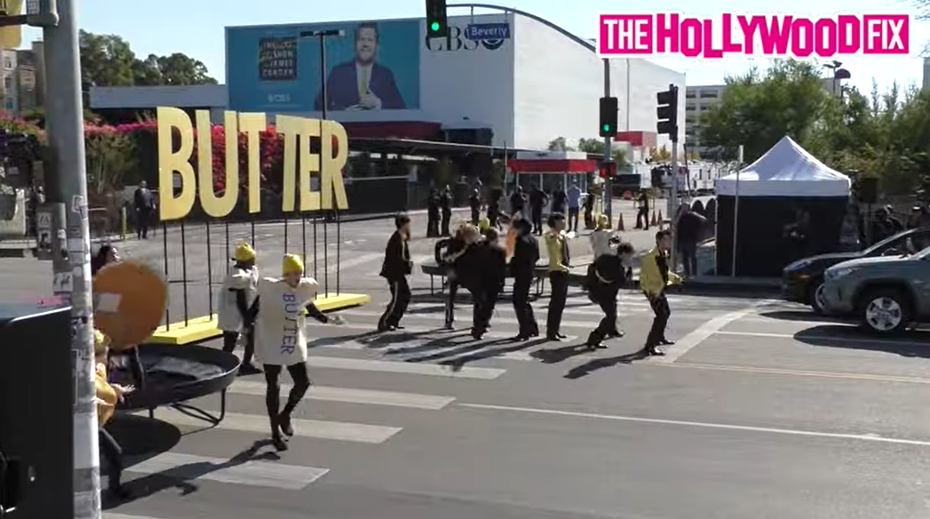 코든 쇼는 촬영장소인 CBS스튜디오 앞에서 깜짝 이벤트 중 하나인 횡단보도 콘서트(Crosswalk concert)를 선보이고 있는데, 마침 촬영장소를 지나던 LA지역방송 KTLA 앵커 셰어 캘빈이 신호대기 중 BTS 즉석공연을 1열 직관하는 행운을 거머쥐었다.