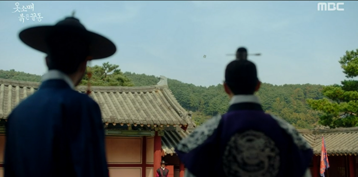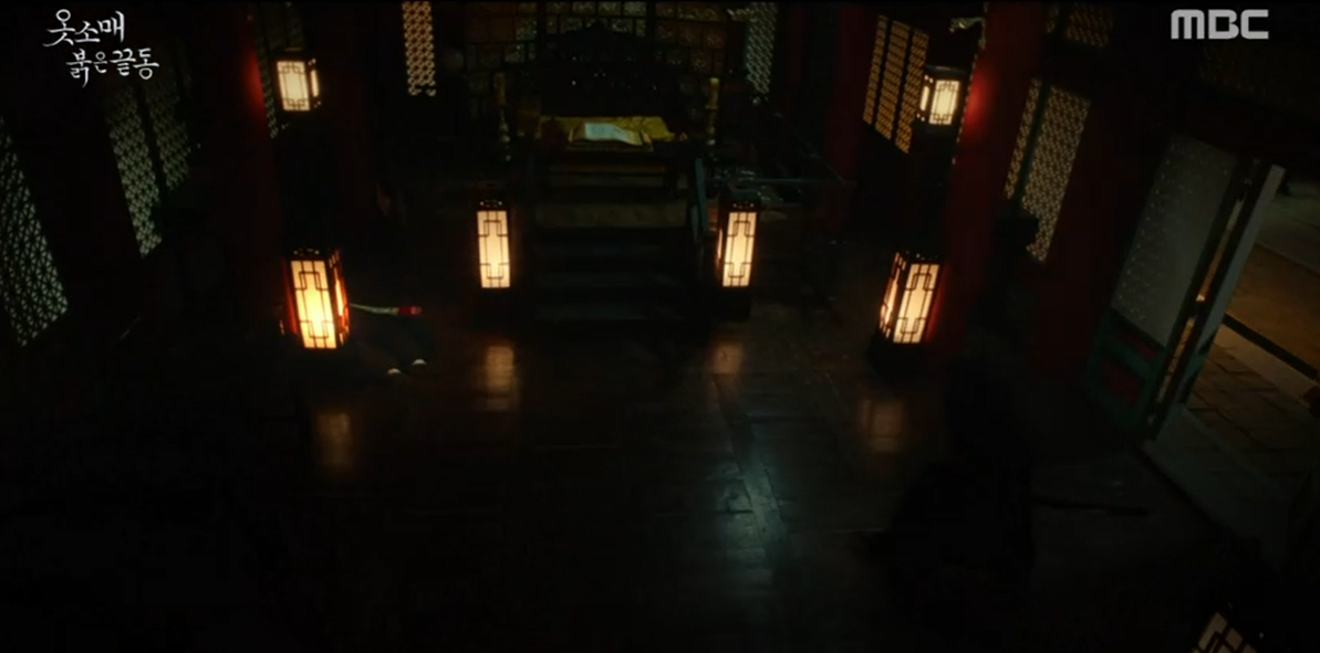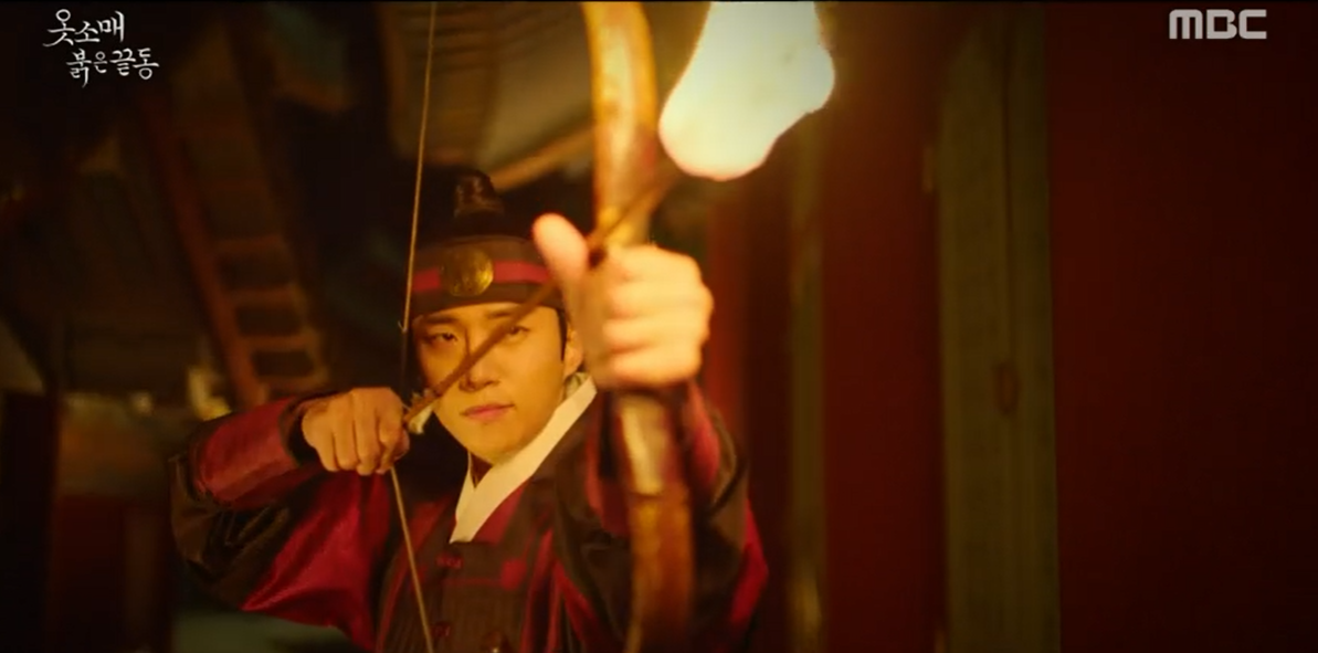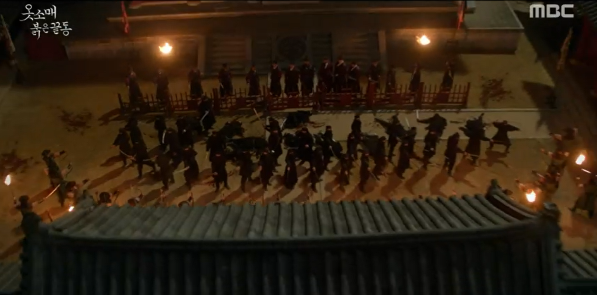 한편 세손과 대치하다 위기에 처한 월혜는 퇴각신호인듯 조총을 하늘로 쏘며 무리를 이끌고 물러났고, 더 많은 수의 변복을 입은 무리가 궁문을 부수고 들어왔다. 홍덕로에게 부탁한 관군은 아직 오지 않았는데, 이산의 목숨을 노리는 이들의 기세는 더 등등해져 있었다.