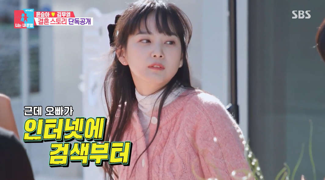 배다해에게 언지를 들은 김무열은 바로 윤승아를 검색해봤다고. 그는 "예쁘더라고. 그래서 내가 먼저 만나자고 연락했지. 만나보니 더 예쁘더라"고 팔불출 소리를 했다.